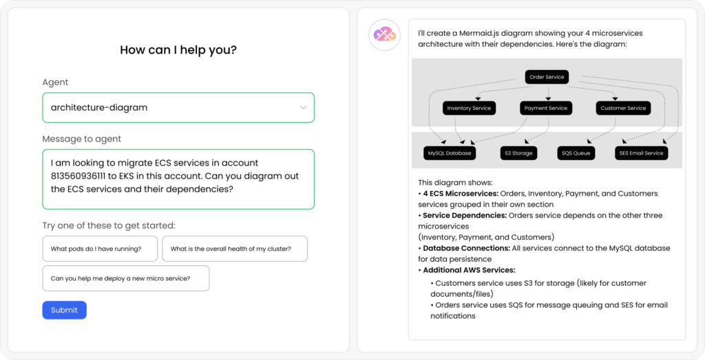 Auto-generate live diagrams and enable instant Q&A to keep architecture current and auditable.