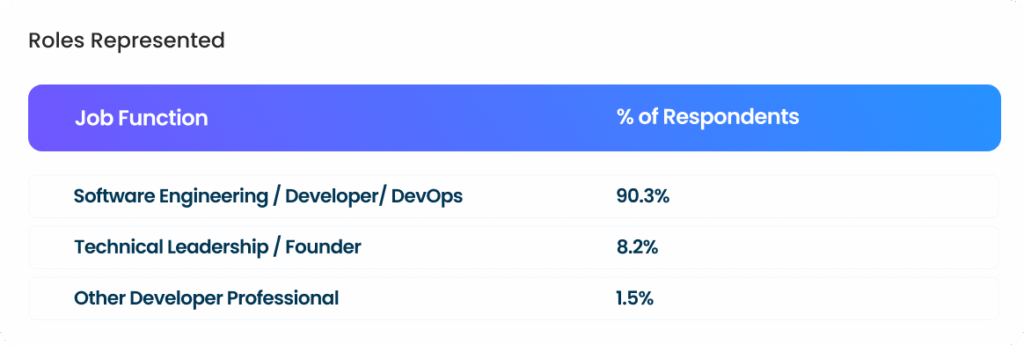 This report is based on a survey of 135 professionals working in software engineering, DevOps, and cloud infrastructure roles. Responses were collected in Q3 2025 from: