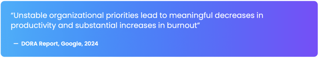 - Speed is the north star. 58% cite Deployment Frequency and Lead time to Change as top priorities in 2026.
