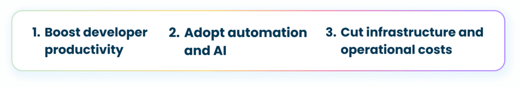 Looking ahead, engineering leaders are placing bold bets on improving internal efficiency and investing in intelligent automation. These were the top priorities for the next 12 months: